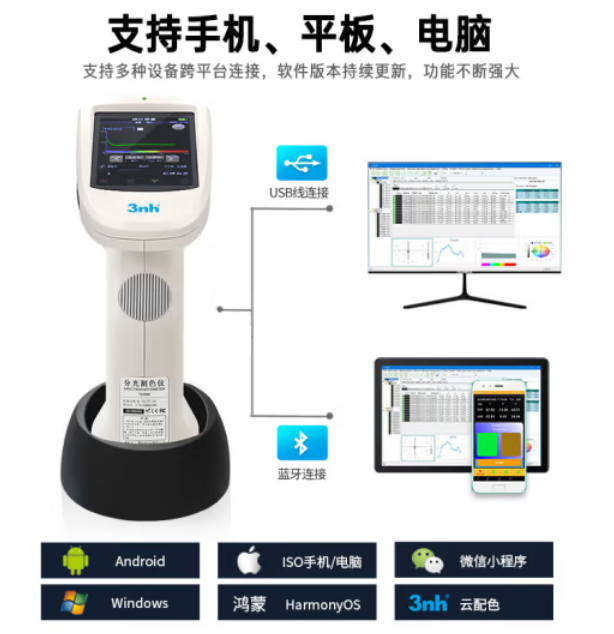 酷泰分光測色儀ST系列是一款高性能的測色儀器,廣泛應用于塑膠電子、油漆油墨、紡織服裝印染、印刷、陶瓷等多個行業。該系列儀器采用大面積硅光電二極管陣列,具有出色的測量精度和穩定性。ST系列分光測色儀具備多種口徑選擇,以滿足不同的測量需求。