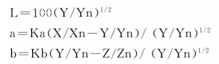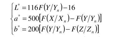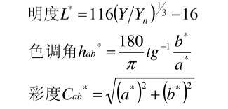 其中:L為明度;a、b為色度;X、Y、Z為物體的三刺激值;Xn、Yn、Zn為完全反射面的三刺激值;Ka、Kb為調整因子。