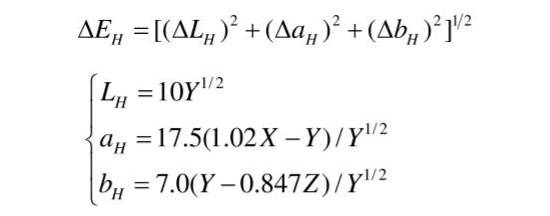 Hunter Lab色度參數技術公式如下: